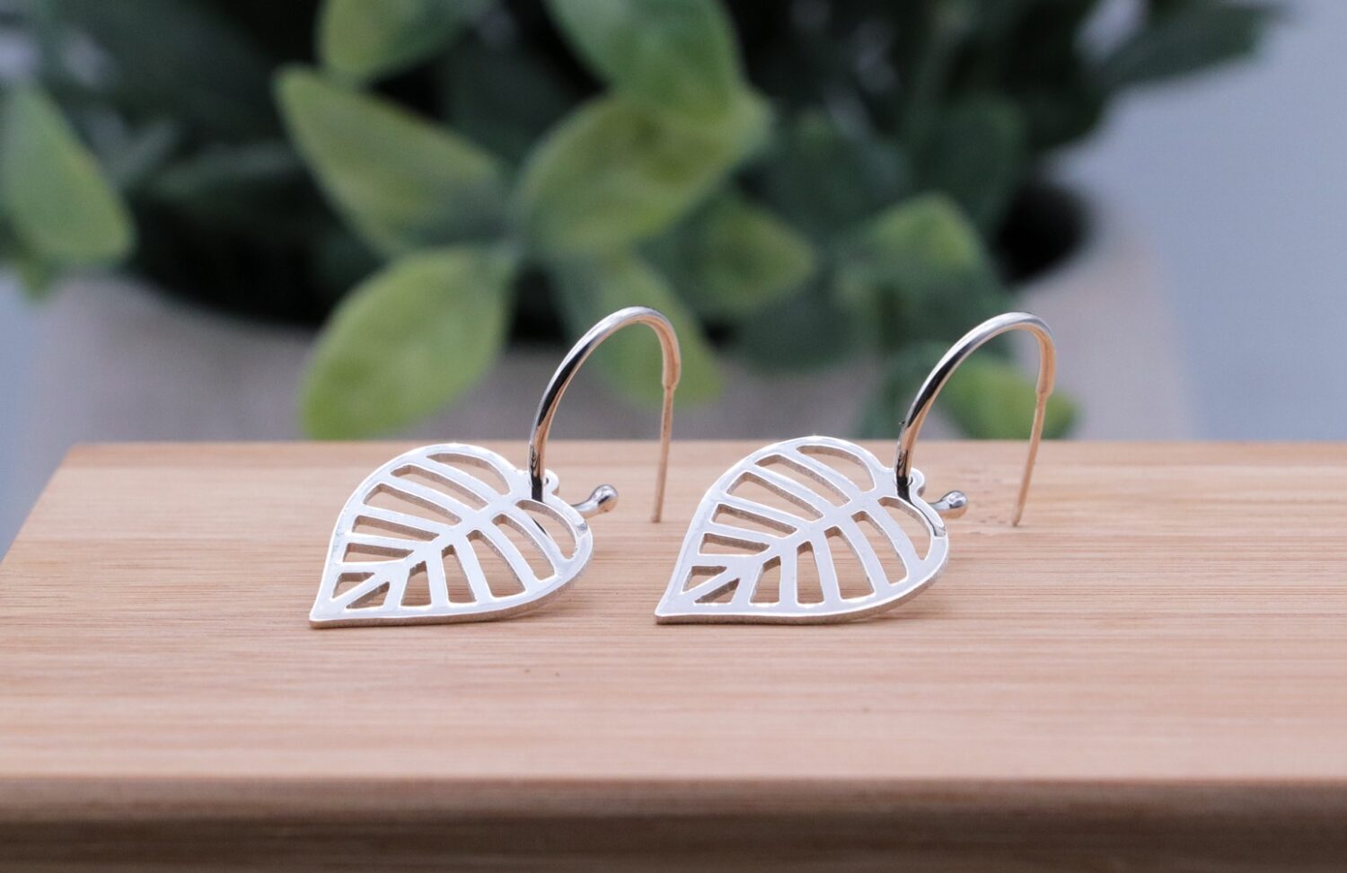 Sterling Silver Leaf Hoops – hand cut from sterling silver and polished to a high shine on both sides. The inner edges are a satin texture.